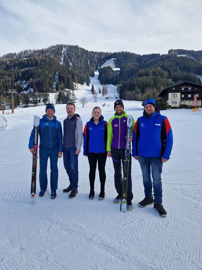 TVB und Bergbahnen Werfenweng (11)_web.jpg Thomas Wallner (Organisationsteam Erztrophy), Josef Holzmann (Geschäftsführer Tourismusverband Werfenweng), Carina Mitteregger (Bergbahnen Werfenweng), Jakob Herrmann (Professioneller Skibergsteiger und Lokalmatador), Georg Lottermoser (Betriebsleiter Bergbahnen Werfenweng)